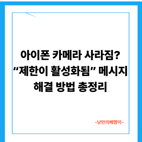 아이폰을 사용하다 보면 갑자기 카메라 앱이 사라지거나, 앱스토어에서 카메라를 실행하려고 할 때 **“제한이 활성화됨”**이라는 문구가 뜨는 경우가 있습니다.