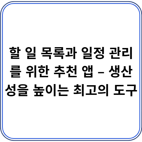 할 일 목록과 일정 관리를 위한 추천 앱 – 생산성을 높이는 최고의 도구